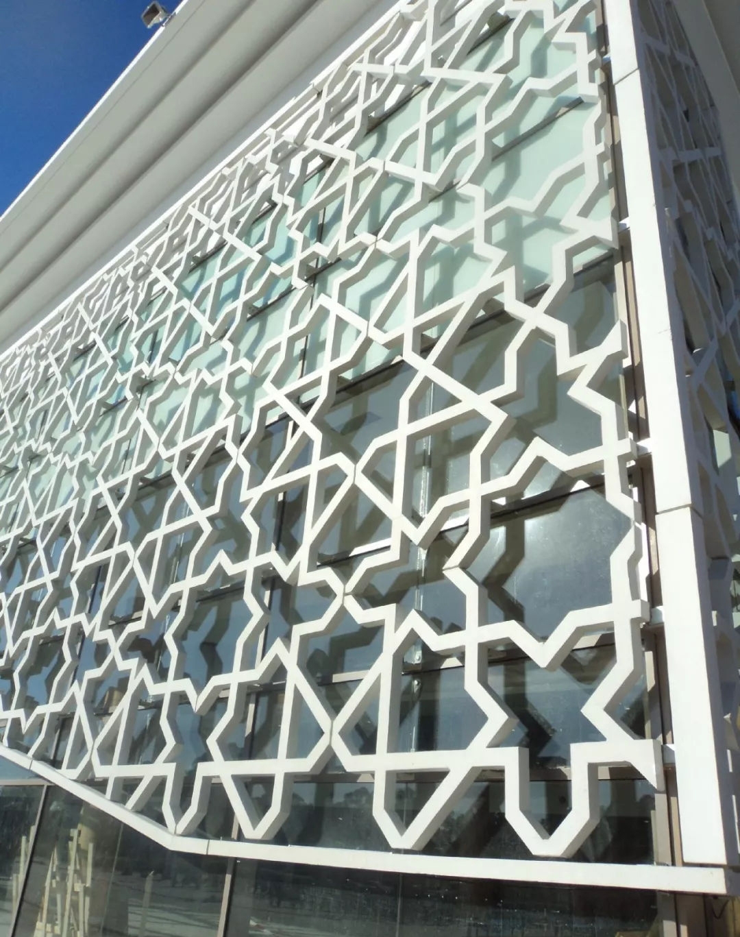 艺术镂空雕花铝单板是一种通过电脑数控冲床机雕刻出来的铝单板幕墙,电脑数控冲床机,也叫电脑数控雕花机,是一种通过图案设计输入,传送到雕刻机中进行编程。雕刻机随着程序的指令进行雕刻,机器自动运转,切割,雕刻出所需要设计的图案样式,再通过打磨平整雕刻口,多余的刺,再经过涂层加工,就得到了成品。