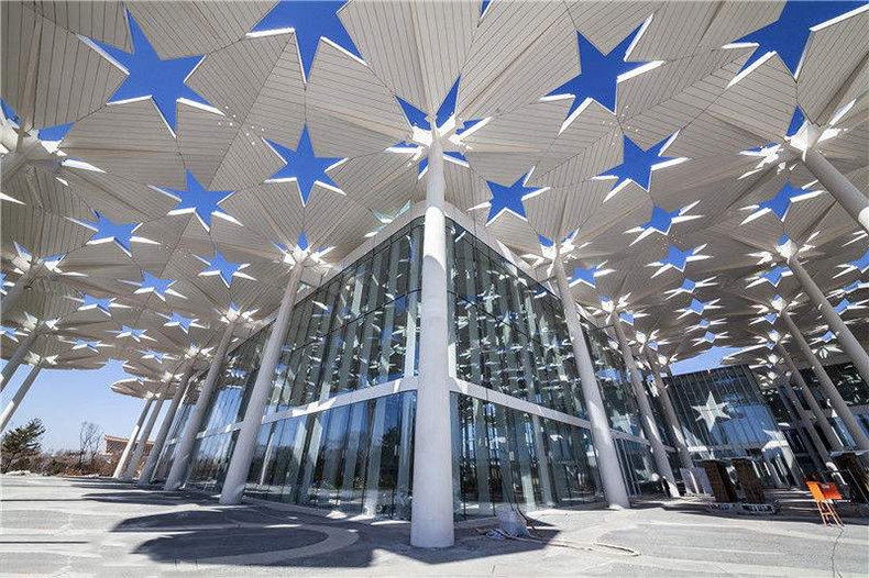 北京世园会国际馆登陆厅首次创新地采用“实景+多媒体投影+制动装置”的综合展示手法,为展陈空间赋予立体、多维的体验感受。展陈以“水润万物”为脉络贯穿整场,水汇流成河,流域孕育、滋养文明,延续传播和融和,实现世界各洲与地区丰富多彩的生态文化。通过水的意象,以展现世界园艺融和、绽放为核心,运用中国特色艺术形式将全球园艺多元文化融汇贯通,充分展示各个国家和地区特有的园艺文化及“名花名树”科普知识,将“一带一路”核心精神贯穿其中,向参观者展现世界园艺文化的“繁花盛景”。